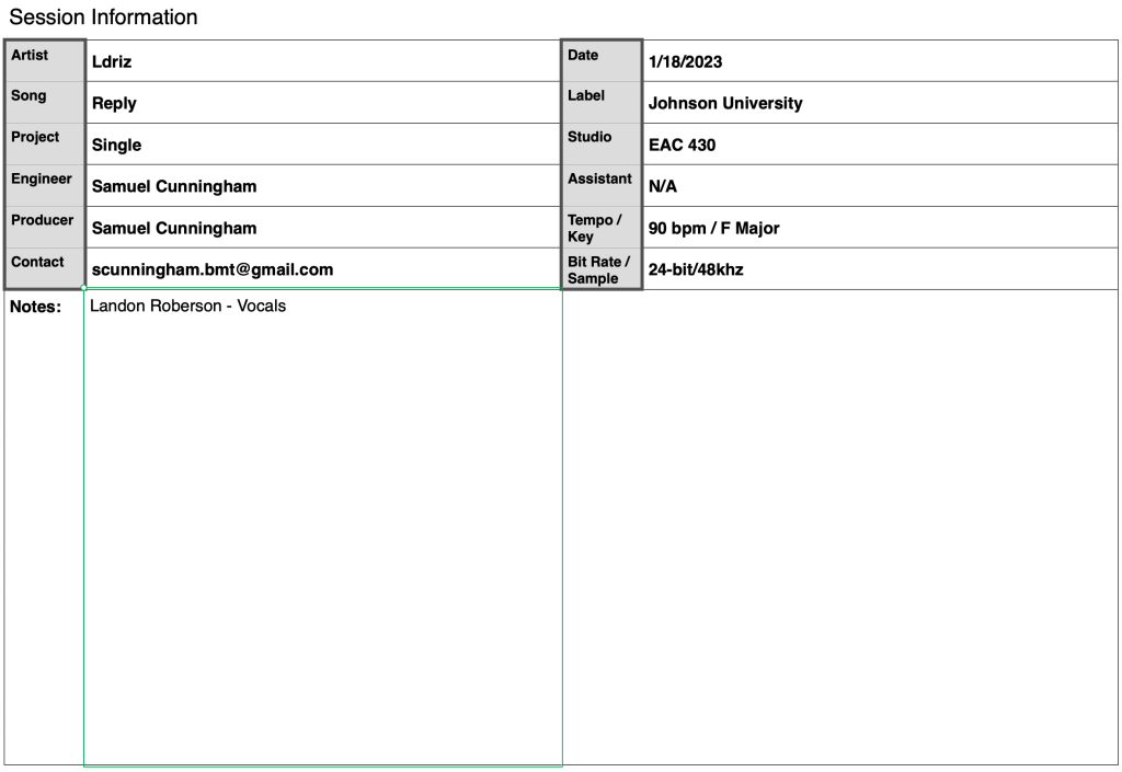 Skills Portrayed: Vocal Miking, Tracking, and Mixing