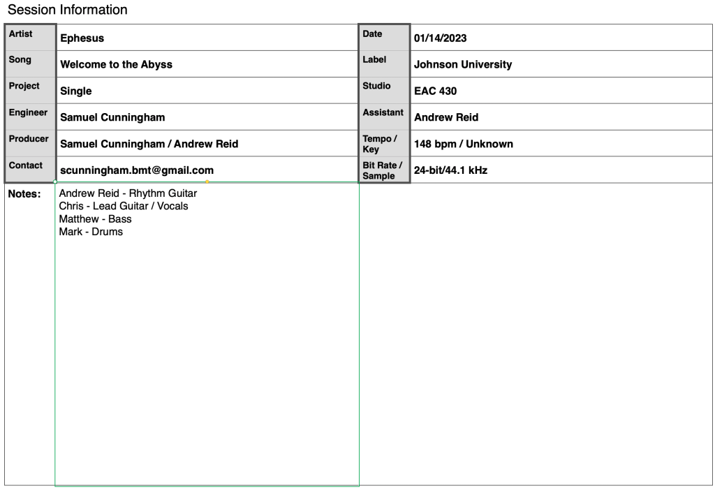 Skills Portrayed: Instrument & Vocal Miking, Tracking, Mixing & Mastering
